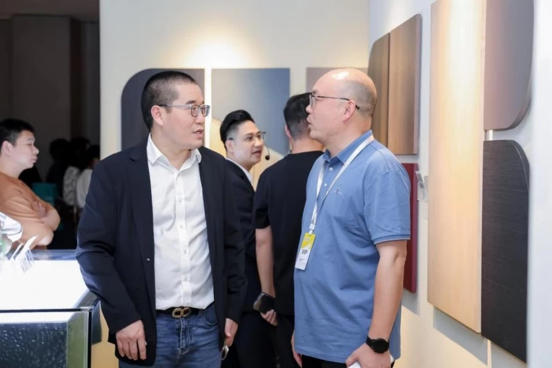 为期四天的展会,媒体嘉宾、意向商、设计师博主、金定奖评审专家纷纷莅临百得胜展厅,参观体验百得胜水漆木皮柜墙门、康氧卧房产品,与百得胜董事长张健、副总经理杨森杰、招商总监张慧,进行多维度、多视角的深入探讨交流,对百得胜展厅的设计理念、水漆轻高定工艺技术、康氧卧房跨界创新等成果,都表示钦佩和赞赏。