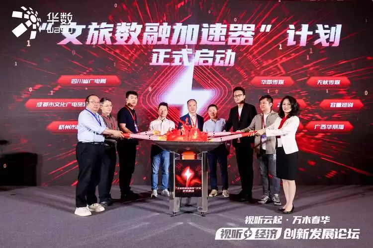 论坛上,华数首次联合容量短剧、四川省广电局、成都市文化广电旅游局、杭州市临平区委宣传部、无忧传媒、Z视介、海南广电文旅中心、广西华丽播共同发起“文旅数融加速器”计划。