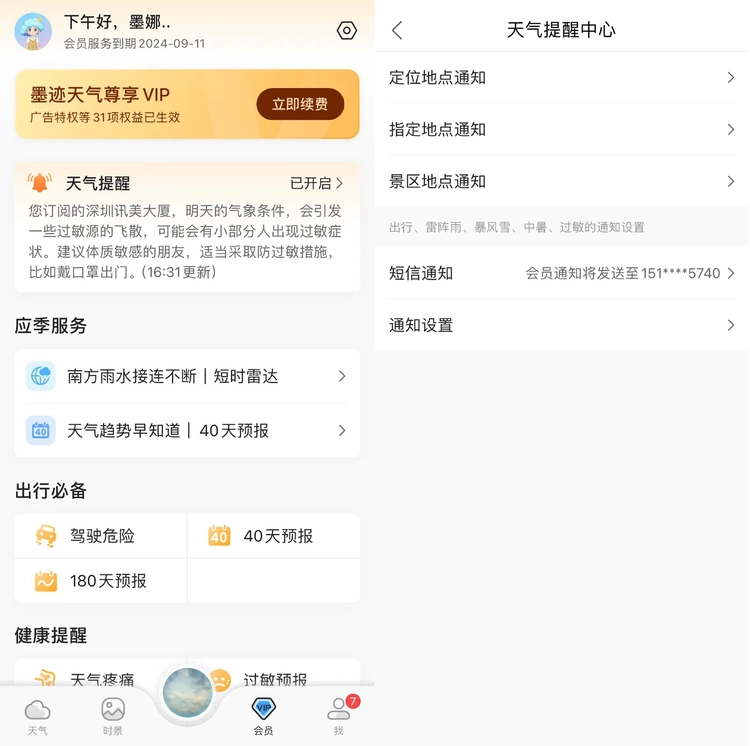 墨迹天气会员提醒功能升级,助力用户开启高品质生活之旅