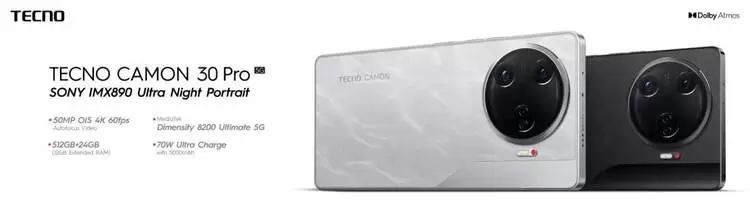 CAMON 30系列是TECNO在移动影像和手机AI技术上的又一巅峰力作。凭借专业级的影像能力和经典时尚的外观设计,CAMON 30系列必将引领潮流,再次与全球用户一同见证平凡生活与壮美自然中的每一刻非凡,捕捉每一份璀璨。