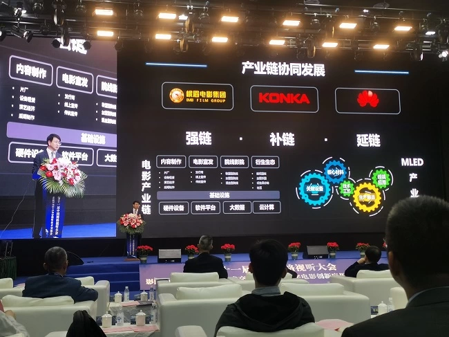 3月28日,影院UHD+LED视听技术交流会暨峨影数字电影创新应用实验室揭牌仪式在峨眉电影集团成功举行,康佳集团携自主研发的18米×7米的12K/10bit+HDR超高清巨幕影院屏和全景式音效系统亮相,屏幕尺寸达到766.6英寸,分辨率达到11520*4752,可带来高清晰度、高亮度、高色域、高动态范围和沉浸式的极致视听体验。该项目颠覆传统的“投影显示系统+幕布”的传统影院放映方式,实现和树立了中国自主可控的自有知识产权国产化LED超高清数字电影放映和影院标准。