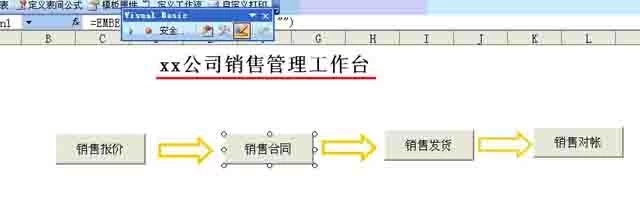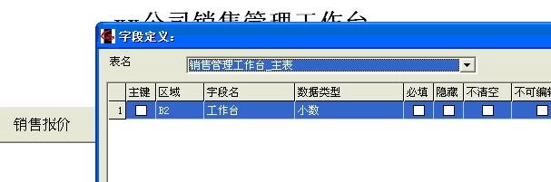 勤哲Excel软件功能的实现用到了excel里面的vba功能,先做个模版,名称定为销售管理工作台,数据字段做一个就可以了,如下