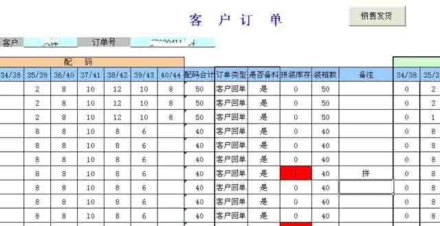 客户订单包含了客户名称,客户名称是从客户档案里来的,可以下拉的,不用手工输入,订单号是自动产生的,货号是从商品档案来的,货号、颜色输入进去后,系统自动会判断是否有库存,需要不需要拼装的。