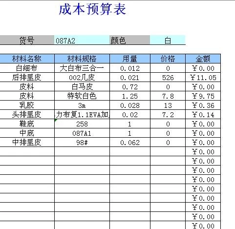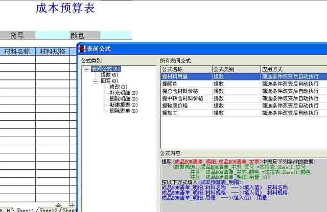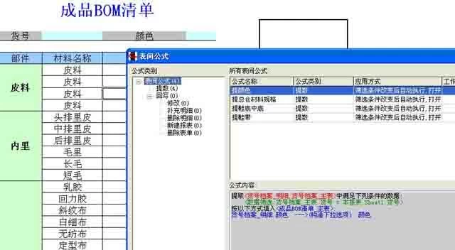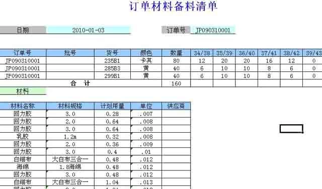 安排下去的订单要自动算出各种材料的总量,前面已经讲到了一双鞋的部件组成,并且上面也制定了生产下单表,通过EXCEL服务器就可以自动算出一个流水号多个订单的材料用量了。