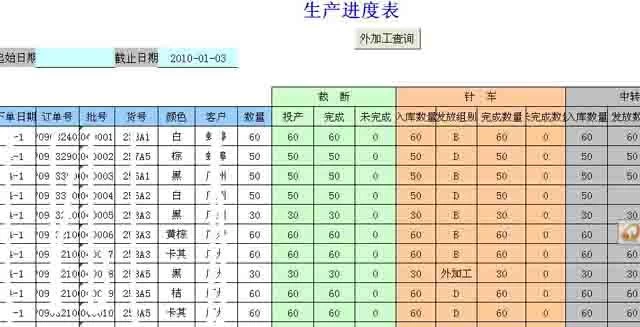 生产进度表是不考虑时间因素,只考虑每个订单在各道工序的计划数和完工数