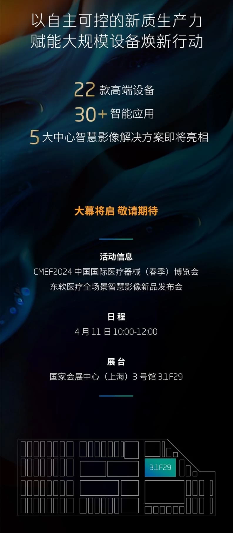 4月11日至4月14日,以“创新科技·智领未来”为主题的第89届中国国际医疗器械(春季)博览会将在上海国家会展中心盛大举行。本届春季会上,东软医疗将以“全线高端 智能焕新”为主题,携22款高端设备、30多种智能应用及5大中心智慧影像解决方案正式亮相,充分展示其在医疗科技领域的最新成果和卓越实力。
