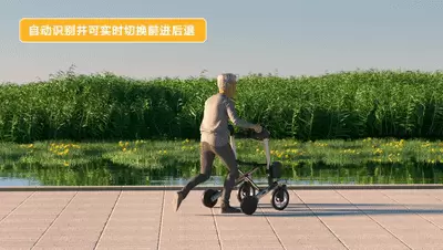 在助行模式下,轻推即动,松手即停,驻车保护;启动平稳,变速流畅,且可以智能识别行走速度,跟随使用者行走步态;双轮自适应差速转弯,转弯过程更加流畅,体验更加人性化、舒适化。
