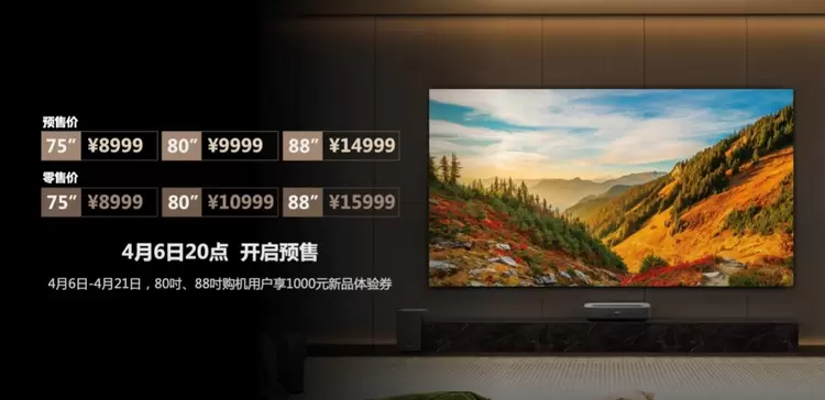 院线好片扎堆涌现,电影发烧友亟待更加专业便利的客厅观影设备,海信激光电视星光S1携丰富尺寸“适时”上市,以护眼科技、震撼声画、海量资源和贴心设计回应广大观众的观影需求,拉满电影发烧友的期待值。发布会当天,星光S1 75英寸、80英寸、88英寸新品同步上线海信激光电视京东、天猫、抖音、苏宁旗舰店,4月6日-4月21日期间,80吋、88吋购机用户还可享受1000元新品体验券,快抓住这波优惠,把“家庭影院”搬回家!