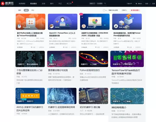 作为IT教育领域的独角兽,慕课网有着1500+的师资规模,以及百度、阿里等企业一线工程师讲师的加持,对于初学者和入门者来说,慕课网会一个不错的AI学习平台。