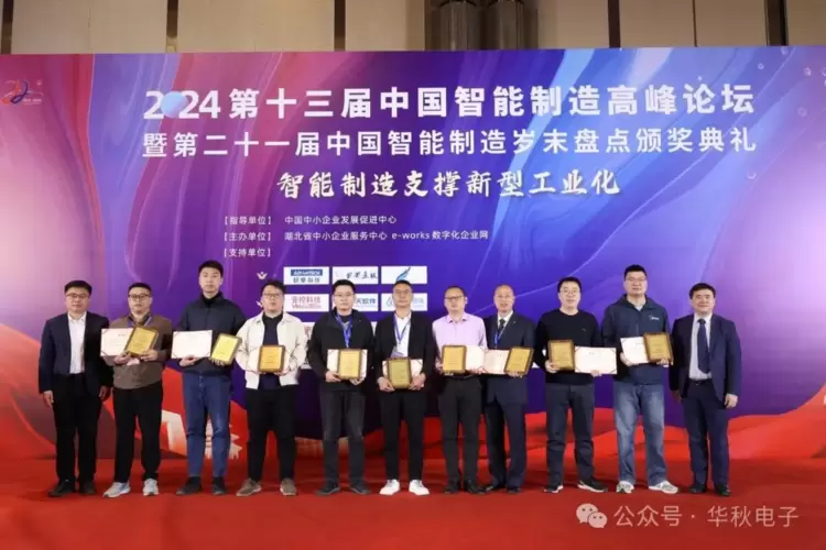 2024年3月28-29日在北京市举行的“第十三届中国智能制造高峰论坛暨第二十一届中国智能制造岁末盘点颁奖典礼”上——华秋凭借其在智能生产领域的卓越表现,荣获由行业权威门户e-works颁发的“2023年度中国智能生产杰出应用奖”。该奖项不仅彰显了华秋在智能制造中的领先地位,也标志着其在提升制造业智能化水平方面所取得的重大成就。