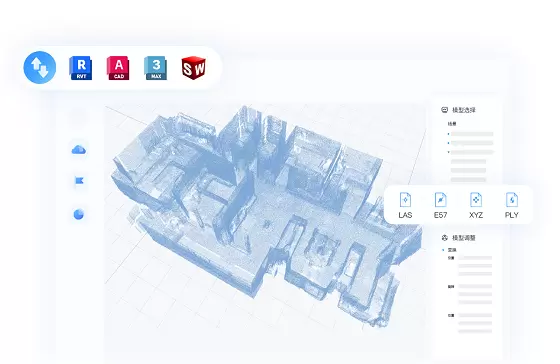同时,可开放集成第三方三维模型、全景照片、虚拟模型、倾斜摄影模型等多元数据,支持Ply、E57、XYZ、LAS等点云格式文件导出,无缝衔接BIM/CAD等专业软件,真正让行业用户能够有所选,有所用。