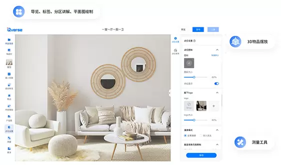 在构建数字空间之外,Qverse三维空间云平台更在意的是如何通过数字空间满足用户的个性化需求。因此,在具体功能设计上,涵盖了营销传播及垂直行业的各类精细化领域的空间数字化需求,真正实现从空间建模到空间编辑再到行业应用的全链路空间管理。