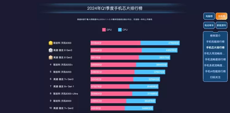 芯片榜:天玑9300重登芯片性能之顶,骁龙8+终于有了接班人
