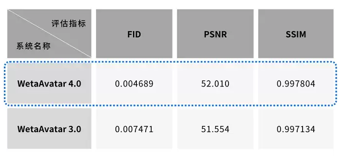 根据综合指标测算和数据对比分析,得出结论:WetaAvatar 4.0在关键性能参数上相较于其前代系统取得了实质性进展。具体而言,在图像的真实感呈现、角色相似度的精确匹配,以及视频输出质量上,均体现出明显提升。