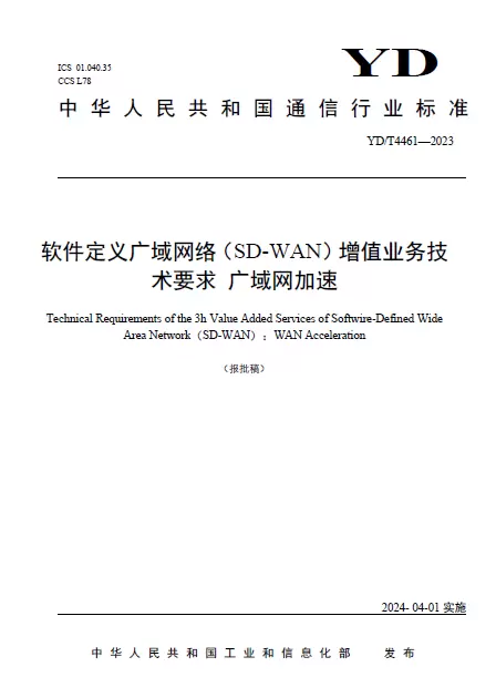 近日,中华人民共和国工业和信息化部正式发布了行业标准YD/T4461《软件定义广域网络(SD-WAN)增值业务技术要求 广域网加速》,该标准于2024年4月1日起正式实施。北京天维信通科技股份有限公司(CBC Tech)作为业内领先的SD-WAN厂商参与了此行业标准的起草,为SD-WAN行业不断走向标准化、规范化贡献力量。