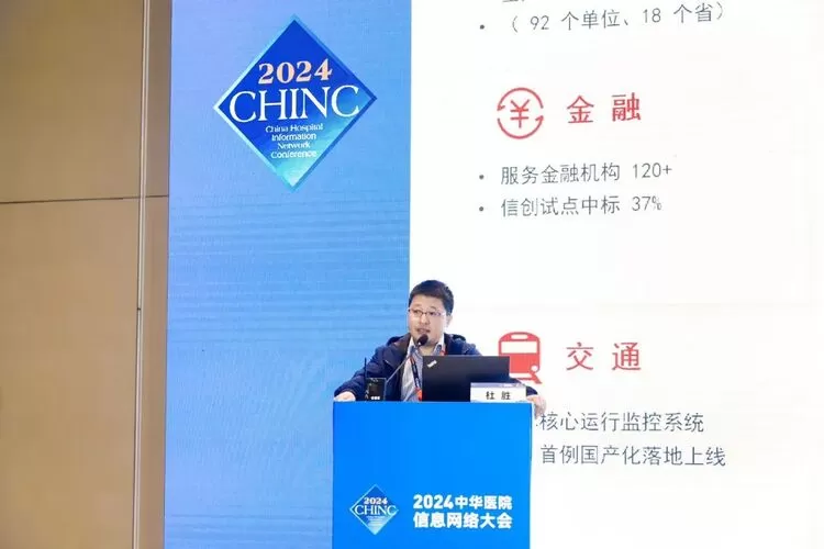 在2024中华医院信息网络大会(CHINC)上,人大金仓总裁杜胜受邀发表《国产数据库助力医疗数字化高质量发展》主题演讲,分享了人大金仓作为数据库领域国家队,是医疗行业数字化转型的积极参与者和坚定支持者,以及金仓数据库在医疗行业数字化转型中所能发挥的关键作用。