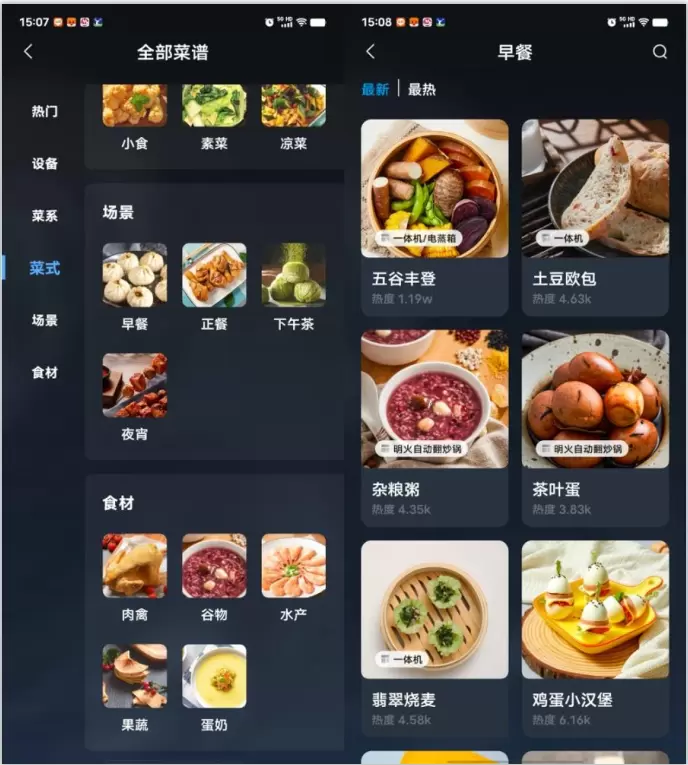 说到这我我必须安利一下老板蒸烤炸一体机CQ9068的一个贴心功能——24小时预约。你可以前一天把要做的早餐直接放在一体机中,比如紫薯、鸡蛋、西兰花、大虾等等,设定好时间第二天自动烹饪,等你醒来第一时间就能吃到热乎的早餐,这个功能简直太贴心了,我是非常喜欢的。如果你吃腻了,不知道早晨吃什么也没关系啊,在手机APP上有海量菜谱,仅仅在早餐的分类中就非常之多,够我们减脂人吃一段时间了。
