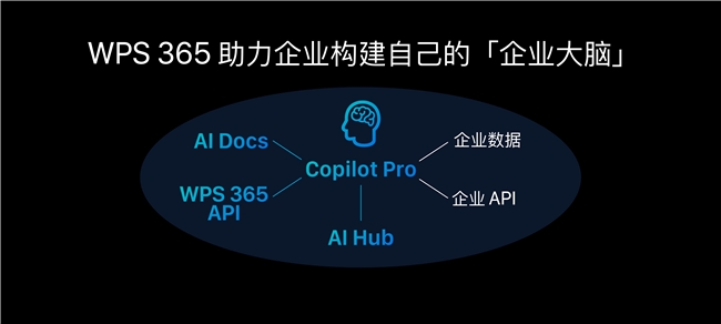 金山办公副总裁王冬介绍说,与个人版不同之处在于,WPS AI企业版聚焦为客户打造企业大脑,它分为AI Hub(智能基座)、AI Docs(智能文档库)、Copilot Pro(企业智慧助理)三个部分。