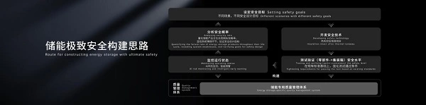 为达成储能极致安全的目标,宁德时代基于技术开发、测试验证、运行监控、安全失效分析的完整循环建立了储能专用质量管理体系。该体系基于应用场景设定不同安全目标,而后根据目标开发相应的安全技术。为确保技术的有效性,宁德时代搭建安全实证平台,模拟不同电网场景和运行环境的储能系统安全实证。在项目投运后,宁德时代通过AI风险监测和智能预警不断地监控运行状态,利用PSA模型量化储能产品全生命周期失效概率,从而验证安全设计目标并持续更新。