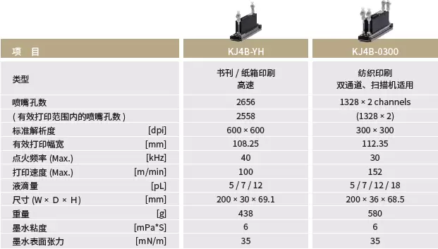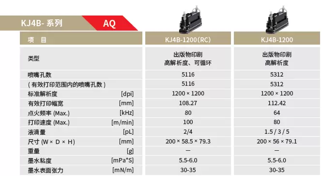 京瓷喷墨打印头KJ4B(水性)系列规格