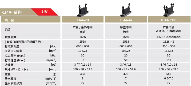京瓷喷墨打印头KJ4A(UV)系列规格
