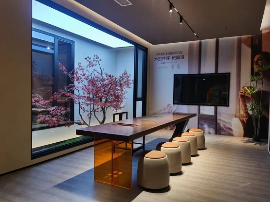 旗舰店拥有围绕客厅、洽谈室等多样生活场景,能一瞬间把用户带入真实的家居生活空间。不仅如此,搭配展厅内的平开窗、推拉窗、推拉门、平开门等系统门窗产品,能够完美呈现出未来家居生活的实际效果。此外,店内还配置性能测试设备,让用户更直观体验到安装后带来的出色性能效果。