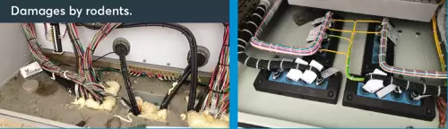 选择Roxtec密封系统可以有效减少动物侵害是避免产生停机、维修和重新布线成本的简单途径。一旦啮齿动物或其他小动物钻进电力设施或机柜带来的不只是风险隐患,后续会耗费更多时间和成本来搜寻、清除小动物,并重新更换咬坏的电缆或损毁的设备。再次进行布线和停机的高昂成本也会对电力设施的运行造成重大影响。