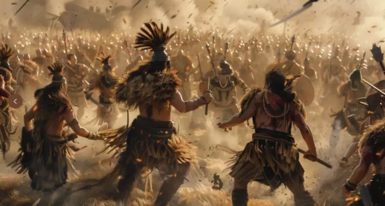 在AI描绘下,生动形象地展现出五千年前中华民族人文始祖征战融合、繁衍生息的历史场景,成功再现了远古华夏民族壮阔感人的发展历程。由APUS AI技术通过文字绘制的视觉画面,将人们进一步带入五千多年前的文明之境。