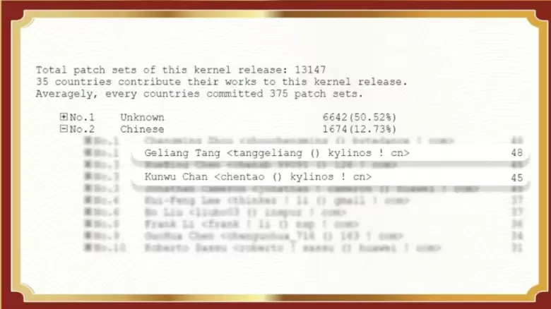 Linux内核patch华人贡献,国产操作系统企业名列前茅