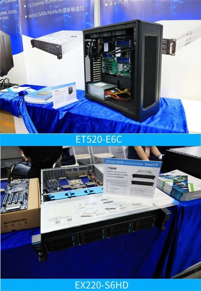 Enine亿玖是深圳市亿时空科技有限公司旗下主推的服务器品牌,多年来致力于服务器定制化服务,主要针对大数据、云计算、云存储、超融合、物联网、集群、人工智能、深度学习、边缘计算等应用,提供基础硬件设备和一体式解决方案。在本次展会中,Enine亿玖展示了其自主研发的服务器和相关解决方案。亮相的高性能计算服务器EX220-S6HD搭载的是AMD EPYC 9004系列处理器,塔式液冷服务器ET520-E6C搭载的是5th/4th Gen Intel Xeon系列处理器,全方位呈现了Enine亿玖在数据存储及高性能计算等领域的最新研究成果,以满足不同企业的数字化转型需求。