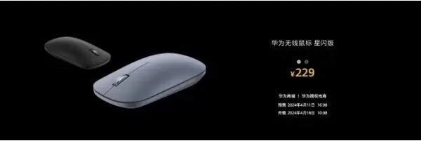 售价方面,华新款华为MateBook X Pro全系11199元起。其中,Ultra 7 16GB/1TB版售价11199元、Ultra 7 32GB/1TB版售价12499元、Ultra 9 32GB/2TB版售价14999元。4月11日16:08开启预售,4月18日10:08在华为商城/华为授权电商,华为体验店/华为授权零售商平台全面开售。HUAWEI Care+三年期 优惠价¥1143*(建议零售价¥1299)*备注:HUAWEI Care+优惠活动时间:2024年4月11日至2024年7月18日。华为无线鼠标星闪版售价229元,4月11日16:08开启预售,4月18日 10:08在华为商城及部分授权电商开售。