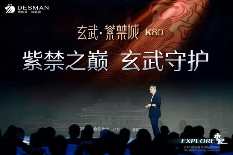 发布会现场,德施曼全新高奢旗舰款玄武•紫禁城K80重磅首发,作为首个与紫禁城IP联名的智能锁产品,重新定义“高奢智能锁”。
