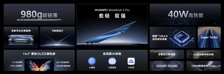 - 全新华为MateBook X Pro发布!将Ultra9放入980g超轻薄机身,华为笔记本中轻且强的最优解