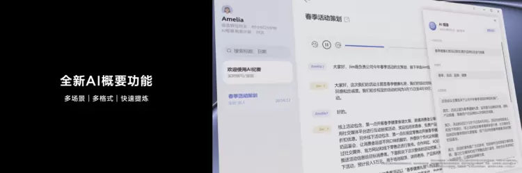 华为MateBook X Pro的智慧体验再升级,全场景Al深度赋能华为智慧PC,首次应用华为盘古大模型,AI概要[21]功能可快速、准确地从文字、音频、视频内容中提取关键信息,能帮助用户在海量信息中快速精准地筛选出对自己有价值的内容,从而帮助用户更高效地掌握会议要点。