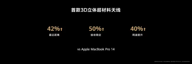 在网络连接能力上,华为MateBook X Pro颠覆性地采用了3D立体超材料天线技术,将传统的2D平面超材料升华至强大的3D立体腔体天线,具备最远420米[27]的远距离连接能力,可为用户带来更远、更稳定、更快速的上网体验。