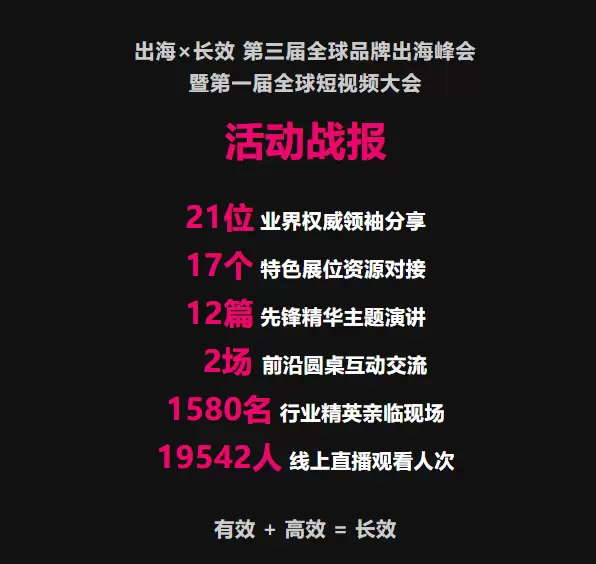 至此,由杭州市商务局、中国(杭州)跨境电子商务综合试验区指导,万邑通总冠名,跨境谷、智象主办的【出海×长效】第三届全球品牌出海峰会暨第一届全球短视频大会已圆满落下帷幕,未来,大会主办方将会以更宽广的视野,持续敏锐洞察市场动态,精准解读消费趋势,与广大中国品牌一起,书写跨境出海的壮丽篇章,让“中国制造”向“中国创造”、“中国产品”向“中国品牌”的转变,在全球化浪潮中焕发出更加璀璨的光彩!