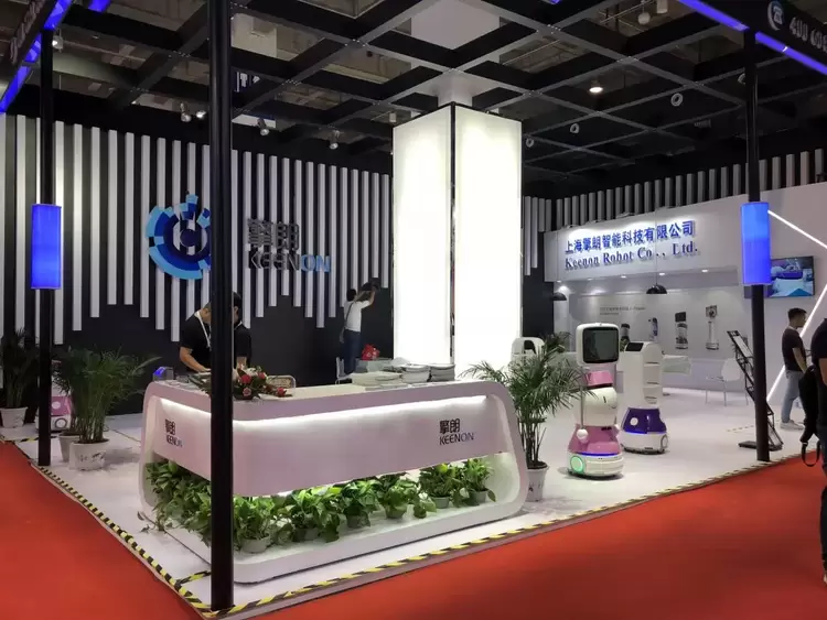 此次擎朗机器人展馆选用黑白两色搭配,简约大气的品牌LOGO,简单明了的色彩搭配,诠释简约沉稳的品牌调性和时尚科技的产品理念,在展馆内格外醒目。还在展区设置了机器人互动体验环节,便于科技迷亲自体验机器人,吸引了无数人潮集聚于此。