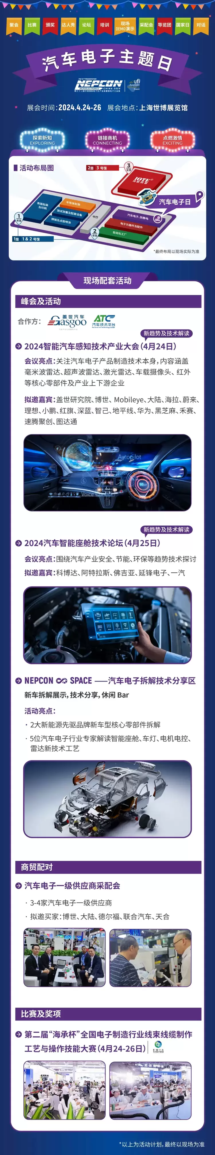 NEPCON China 2024将于4月24-26在上海世博展览馆举办,同期创新打造“汽车电子行业日”