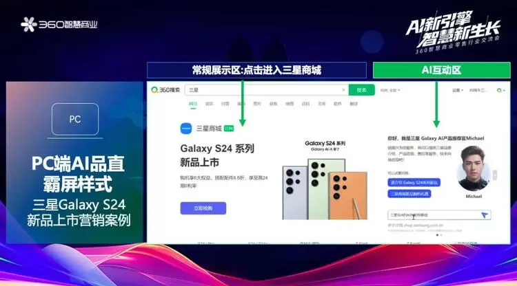 而作为距离消费者最近的行业之一,零售行业对市场环境的感知更为直观而深刻。360商业化零售行业负责人刘焱在致辞中指出,广告主身处长期品牌建设和短期营收张力的挤压之中,审慎、理性的投放观念依然是主流。也因此,降本增效仍将是营销行业未来几年的关键词。而随着存量竞争日趋激烈,当针对细分人群的精细化运营及场景打透已成为“降本增效”的标配,新技术的赋能或许将成为企业在这场存量战争中能否实现弯道超车的最大变量。