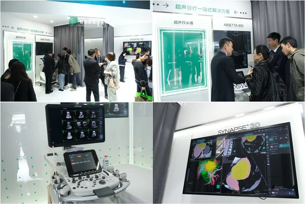 智慧影像融合:现场展示了可互动体验的超声产品ARIETTA 850和ARIETTA 750SE,以应用和术式合理化分类,支持常规检查、介入消融、腹腔镜微创、开放性手术、机器人手术等各类辅助诊断的超声探头群,以及可满足三维重建术前规划需求的SYNAPSE 3D解决方案,再加上多影像融合介入导航系统等技术的加持,在早筛早检、术前术中、及不同临床学科的多元场景中,满足医生可视化精准诊疗等多样需求。