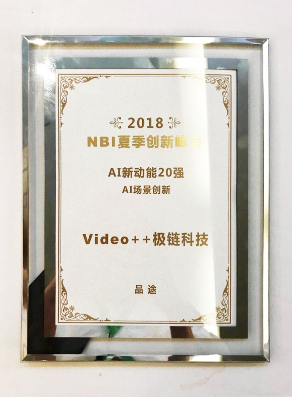 2018年8月8至8月9日,品途集团举办的2018·NBI夏季创新峰会在北京成功召开。作为评选新商业创新影响力的权威奖项,亦是此次峰会的重头戏,8日下午,品途集团揭晓了2018·NBI夏季创新峰会「AI新动能20强」,并遴选5家代表企业颁发专项奖,极链科技Video++凭借AI创新大文娱产业的优质成果荣登榜单,并获得「AI场景创新」专项奖。