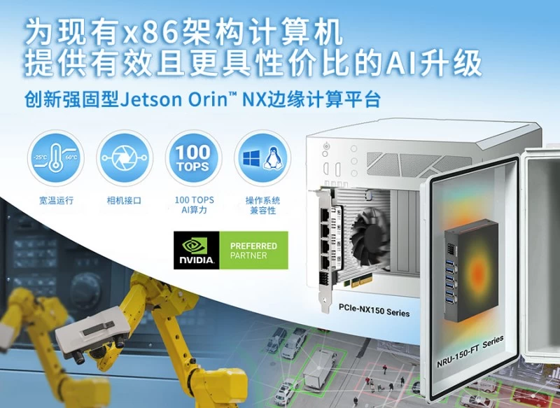 Neousys宸曜科技的PCIe-NX150系列和NRU-150-FT系列拥有强固稳定的运行能力、相机接口和AI算力,同时又在外形上作了更贴近实际应用的创新改变。这使得PCIe-NX150系列和NRU-150-FT系列非常适合为现有x86架构计算机进行升级,使其应用于工厂、路侧或农业边缘计算检测方案。