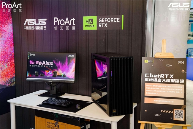 很显然,AI应用不能停留在理论知识上,实践才知潜力。在活动现场,不少学子来到华硕ProArt创艺工坊、ChatRTX本地语言大模型体验区,通过Stable Diffusion合成虚拟头像数码照片,获得专属于自己的虚拟头像纸质照片。借助本地部署的开源大模型ChatGLM和检索增强生成(RAG)技术,学子们充分体验了本地、快速、信息定制的生成式 AI应用,感受到NVIDIA在语言交互处理方面的强大实力。这一切都离不开ProArt全家桶主机的大力支持。