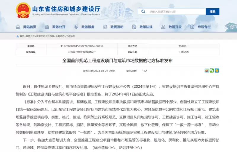据了解,该标准创新性地建立了工程建设项目统一赋码体系,为全国首部系统性规范省级工程建设项目与建筑市场数据的地方标准。