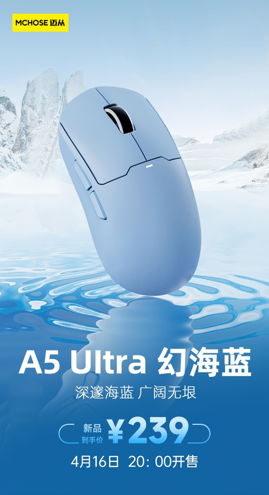 迈从官方发布A5鼠标Ultra版新色幻海蓝!