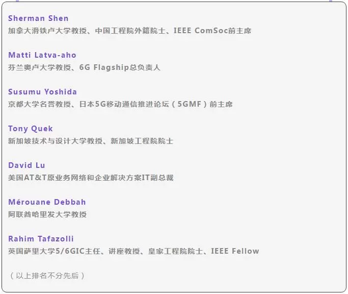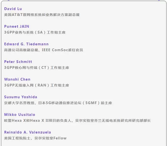 平行论坛围绕八大前沿方向:通信与AI融合、无线通感融合、空天地一体化、网络架构及关键技术、可信与安全、高频段无线传输与器件、未来业务与应用猜想、新技术新材料,也将有来自多个国家的嘉宾参加,汇聚全球智慧,交流分享各国各地区6G发展路线、6G频谱规划、6G新业务和应用、关键技术与创新方向、标准化节奏等内容。