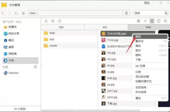 TOS 6采用全新的桌面设计,引入了全新的"开始"快捷菜单,一次点击即可快速访问最近的应用程序、查看所有已安装的应用。对于在以往版本广受欢迎的文件管理功能,TOS 6首创了NAS文件管理标签,通过使用标签,或者新增新的标签,使用 TOS 的网页文件管理工具,在不同的文件目录下移动、复制、粘贴文件等操作变得异常简单。