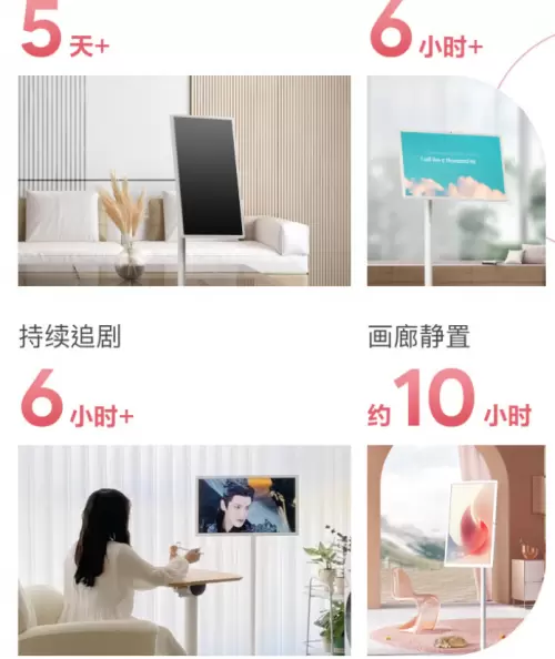 由于具备超大屏幕、长续航时间、随心移动等功能特点,添添闺蜜机长续航版L又被称为行走的27英寸全能平板。续航方面,添添闺蜜机长续航版L至多可待机5天,能够持续追剧6小时,满足消费者长时间观影娱乐的需求。此外,闺蜜机还配备了万向轮,轻轻一推即可随心移动,还支持旋转、倾斜、升降等多种角度,不管客厅还是卧室,添添闺蜜机长续航版L都能随时随地陪在消费者身边。