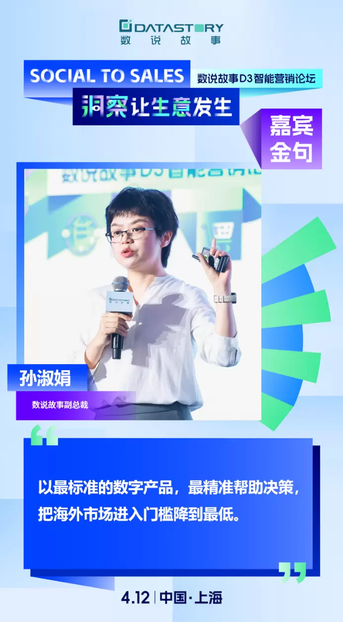 数说故事副总裁孙淑娟Jessie为我们带来了《乘势电商风向,加“数”全球生意》的主题演讲,并向我们正式发布数说故事首款出海产品全球社交电商的首选生意伙伴——「数说全球Glodastory」。