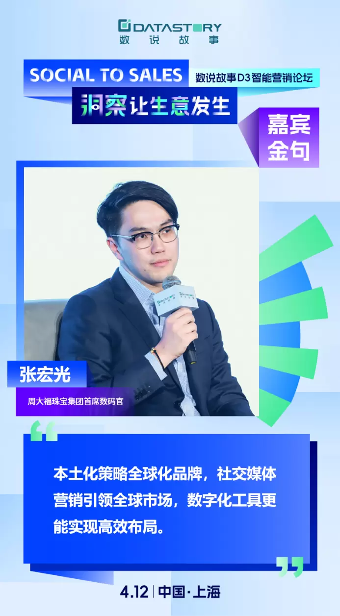 周大福珠宝集团首席数码官张宏光(Patrick)从珠宝零售数字化建设的全新视角,阐述了数字技术如何赋能珠宝行业找到出海增长机会的思考。周大福作为珠宝行业的领军企业,一直以其卓越的品质和精湛的工艺赢得了全球消费者的广泛赞誉,近年来,周大福更是积极拥抱数字化转型,充分利用社交媒体营销经验和数字化工具,读懂海外消费者,获得更多新生意。